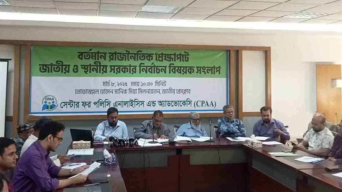 শনিবার (৮ মার্চ) জাতীয় প্রেস ক্লাবের তোফাজ্জল হোসেন মানিক মিয়া হলে সেন্ট্রাল ফর পলিসি এনালাইসিস অ্যান্ড অ্যাডভোকেসি (সিপিএএ) আয়োজিত বর্তমান রাজনৈতিক প্রেক্ষাপটে জাতীয় ও স্থানীয় সরকার নির্বাচন বিষয়ক সংলাপে বক্তারা এসব কথা বলেছেন।