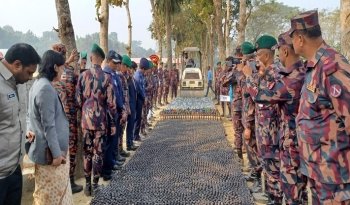 নন্দী টিভি ডেস্ক :চুয়াডাঙ্গা ও মেহেরপুর সীমান্তবর্তী এলাকা থেকে বিজিবির উদ্ধারকৃত অবৈধ বিভিন্ন ধরনের মাদকদ্রব্য ধ্বংস করেছে। ফেনসিডিল, মদ, বিয়ার, হেরোইন, গাঁজা, কোকেনসহ বিভিন্ন ধরনের মাদকদ্রব্য ধ্বংস করা হয়। ধ্বংসকৃত মাদকদ্রব্যের বাজার মূল্য প্রায় চার কোটি টাকা। রোলার ও আগুনে পুড়ে মাদকদ্রব্য ধ্বংস করা হয়। বুধবার বেলা ১১ টায় চুয়াডাঙ্গা ৬ বিজিবি ব্যাটেলিয়ানের প্রশিক্ষণ মাঠে এ মাদকদ্রব্য ধ্বংস করা হয়।