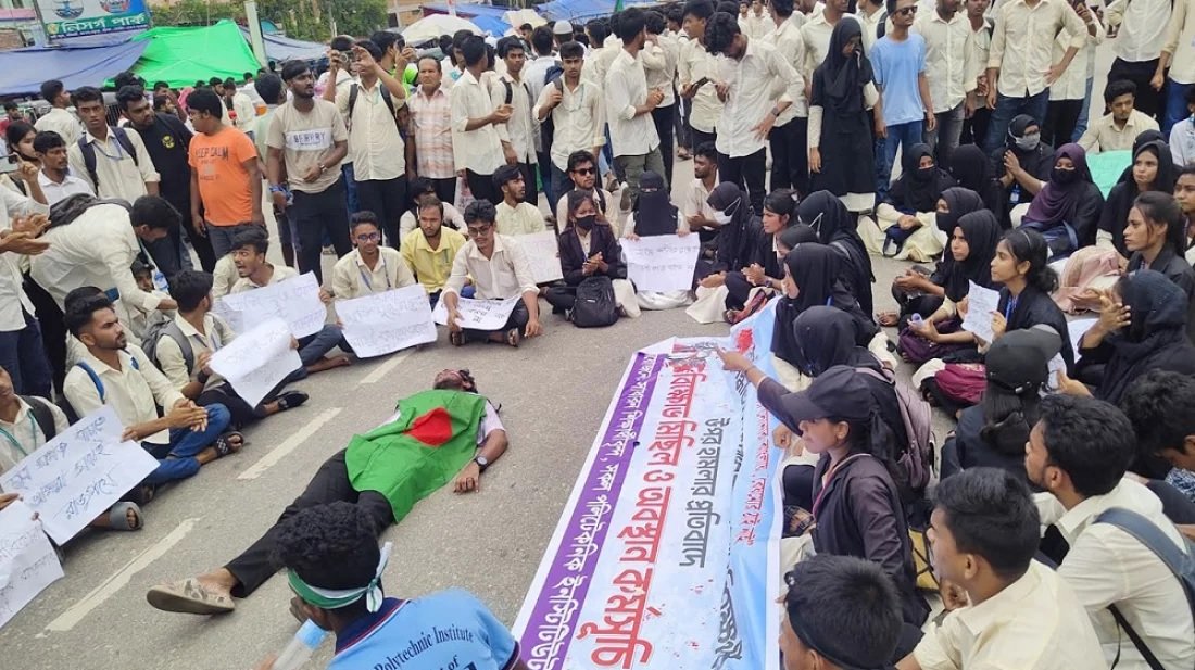 বুধবার সকাল থেকে ছয় দফা দাবিতে রাজধানীর তেজগাঁওয়ের সাত রাস্তা, মোহাম্মদপুর ও মিরপুরসহ দেশের বিভিন্ন স্থানে সড়ক অবরোধ করেন পলিটেকনিক ইনস্টিটিউটের শিক্ষার্থীরা।
