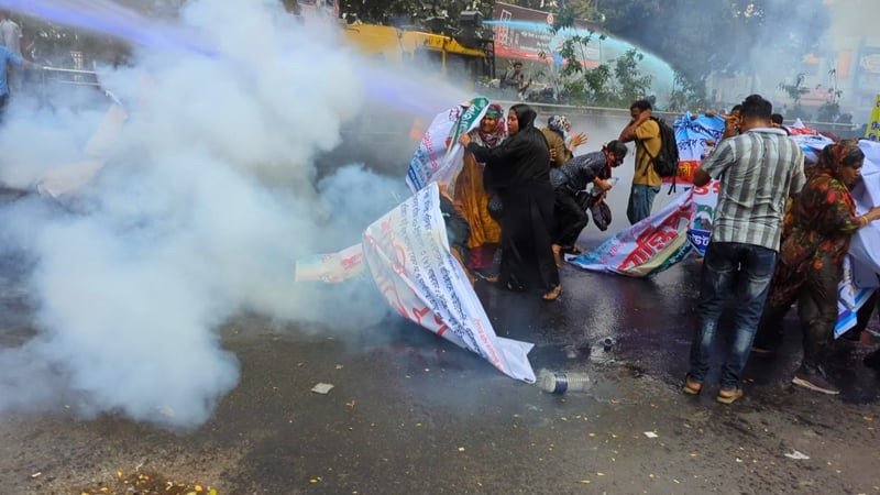 শনিবার ( ২২ ফেব্রুয়ারি) বিকেল সোয়া ৫টার পর আন্দোলনকারীদের ওপর পুলিশকে অ্যাকশনে যেতে দেখা যায়।